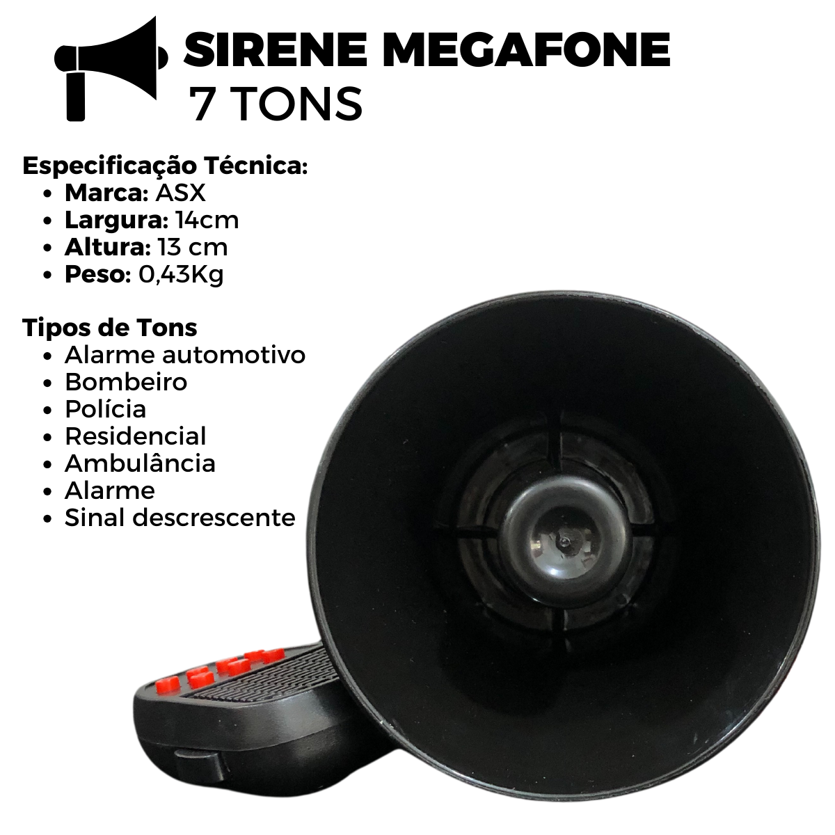Descrição Sirene Policia Tipo Rontan Megafone 7 Tons Carro Moto Alarme: