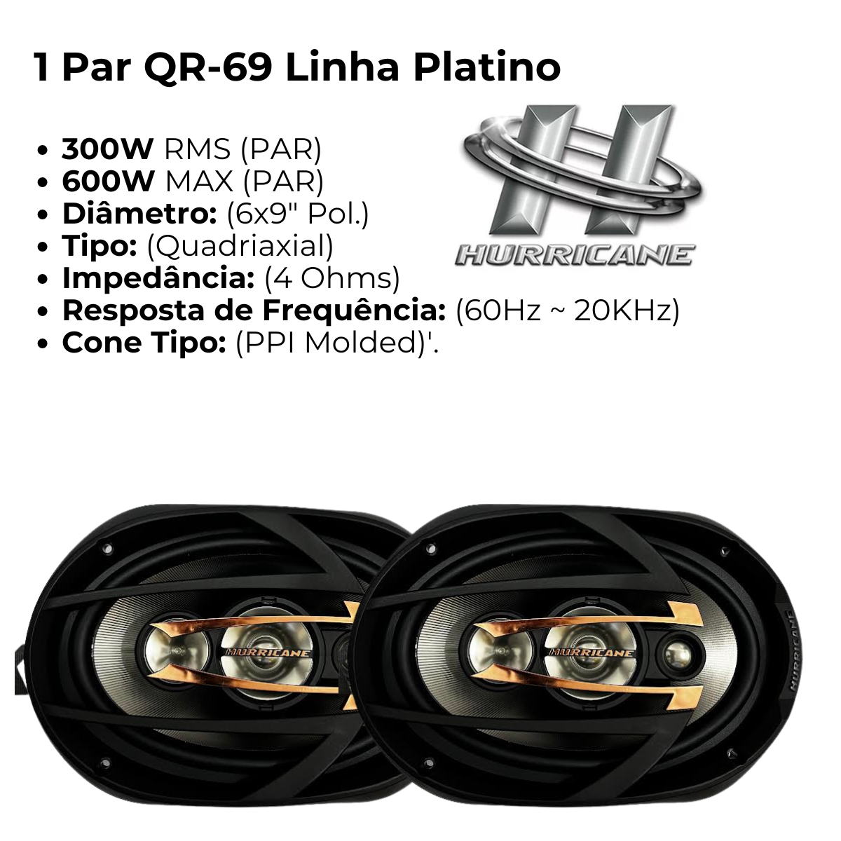 O alto-falante Quadriaxial 6×9″ Platino QR69 é um modelo de alto-falante automotivo produzido pela marca Hurricane.