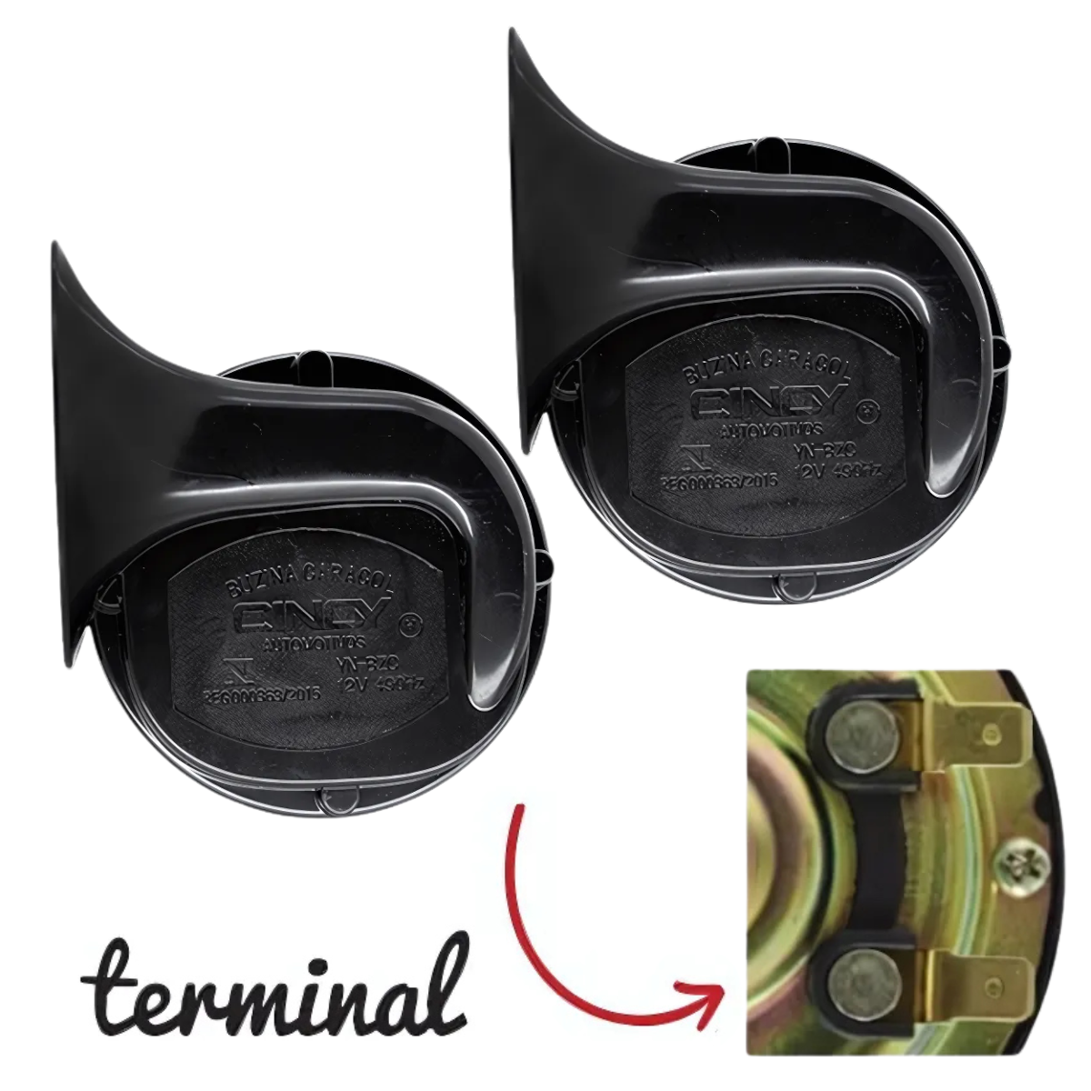 - Tipo: Buzina eletromecânica tipo caracol