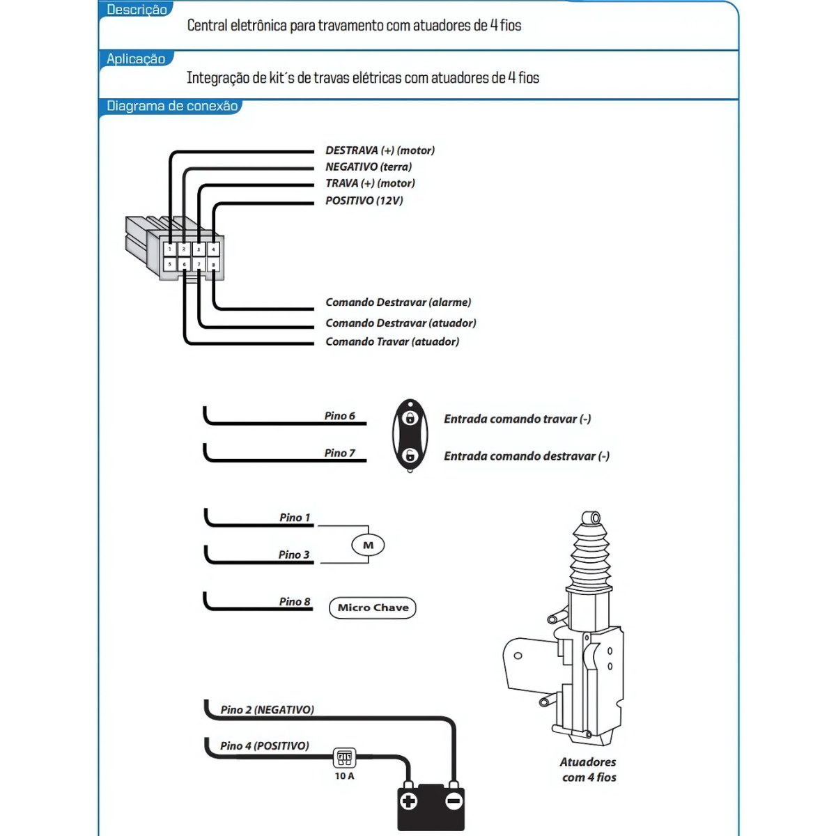 Projetado para veículos com sistema de trava elétrica com motores de 4 fios.