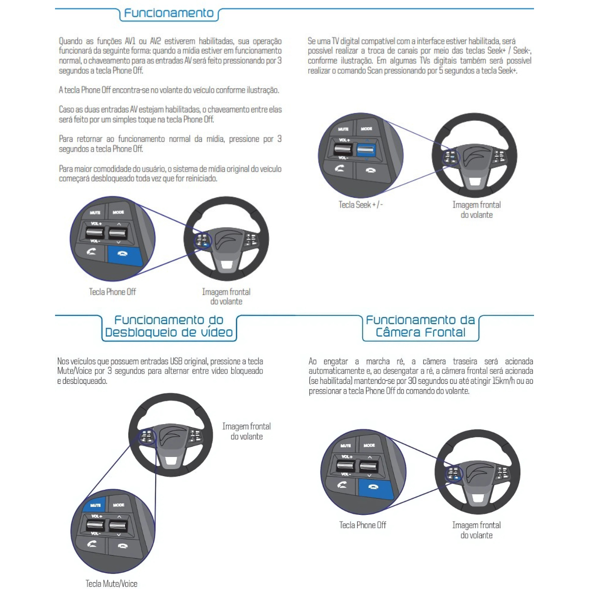 Compatibilidade elétrica: Preserva todas as funções originais do veículo (GPS, comandos de volante, Bluetooth, câmera de ré, etc.).