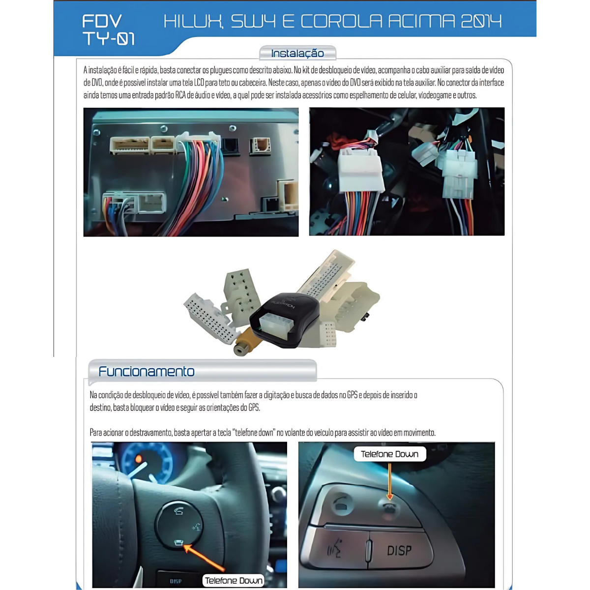 Outros modelos Toyota equipados com multimídia original compatível com FDV TY-01