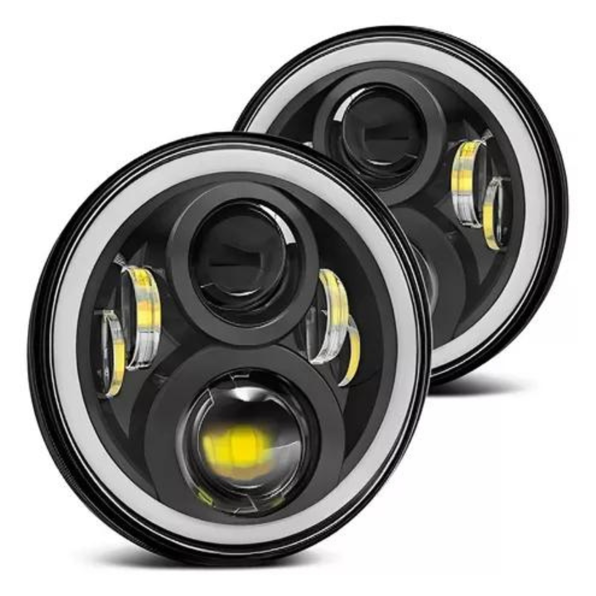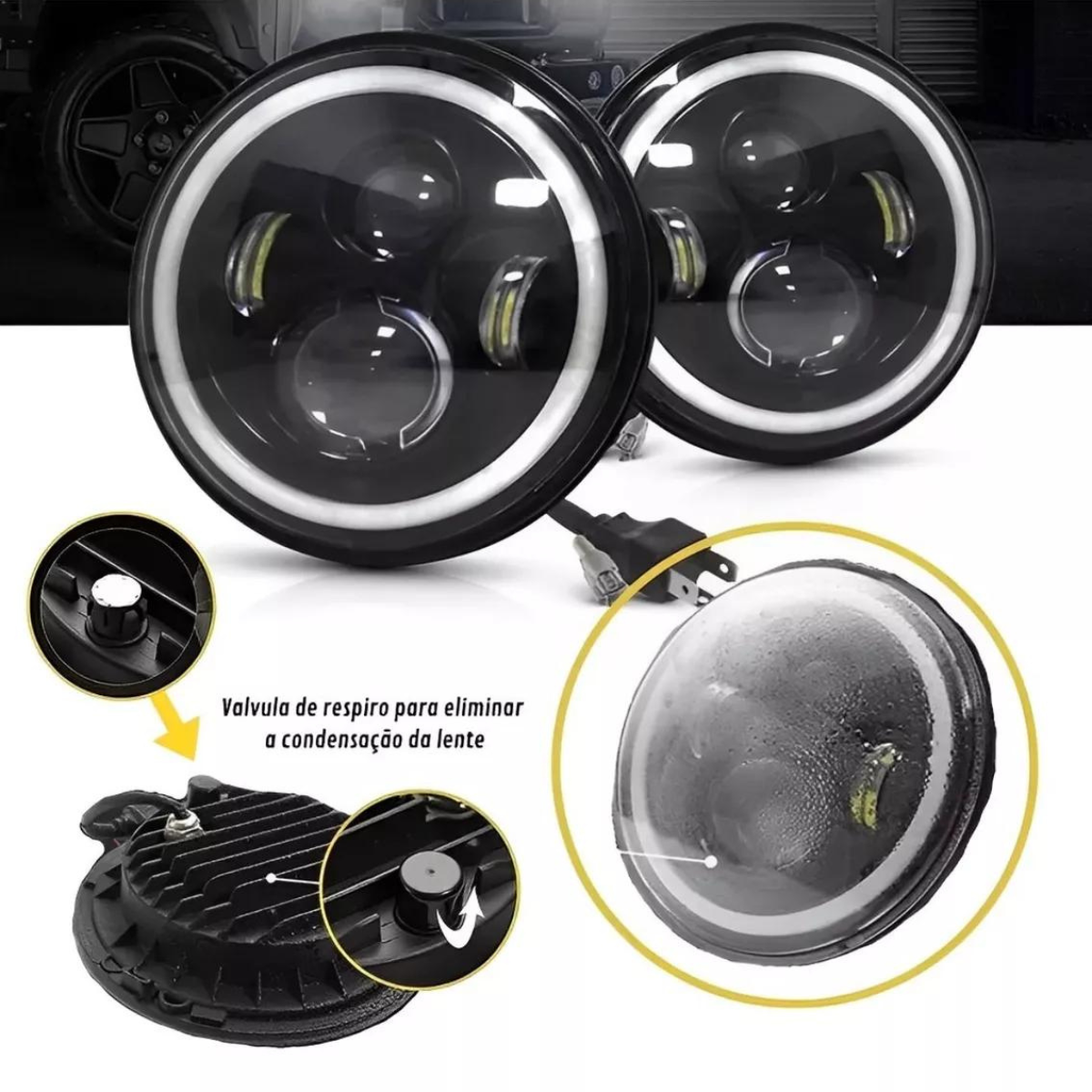 Farol Angel Eye Redondo 7 Polegadas ASX – 45W 5.400 Lumens 6000k Bivolt 12-24v função Drl 6000k função seta 3000k