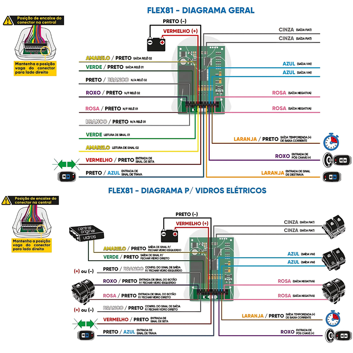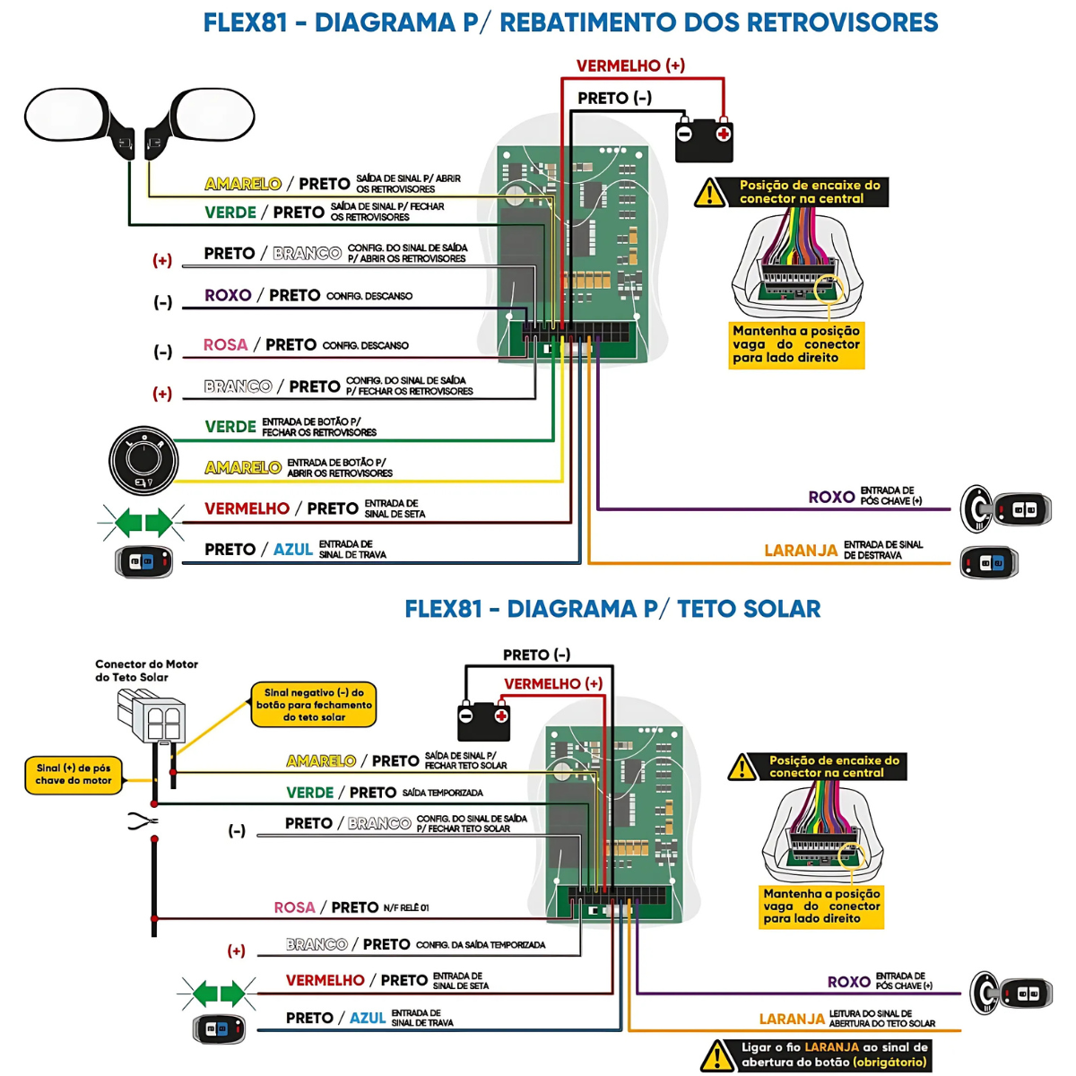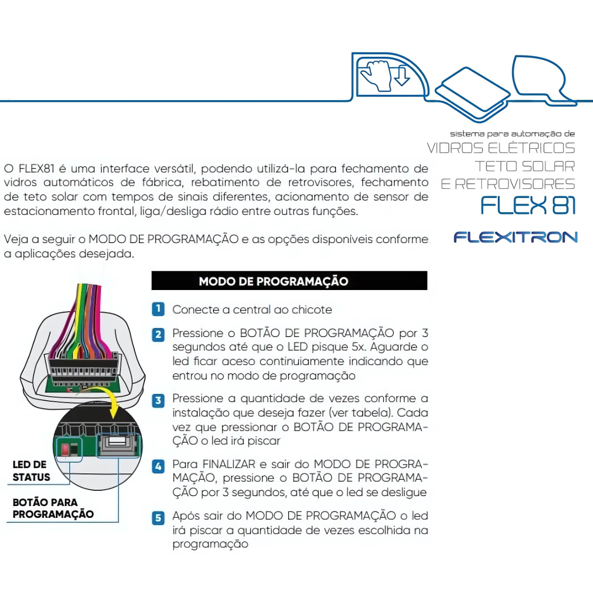 SUBIDA DE VIDRO, REBATIMENTO DE RETROVISORES, Teto Solar – FLEX 81 Universal
