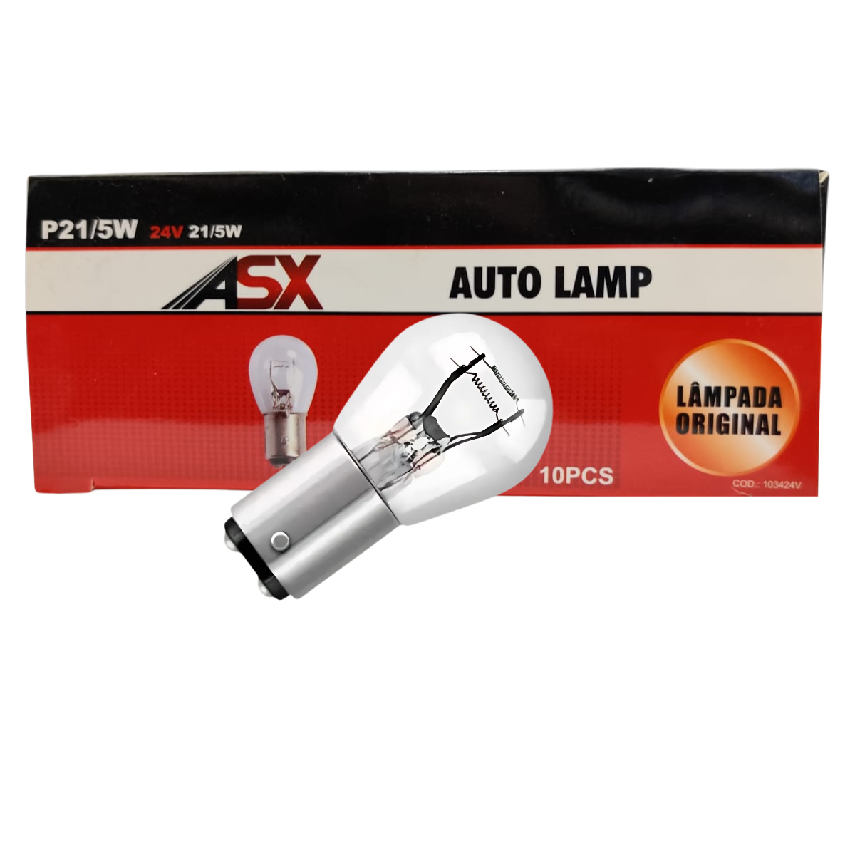 A Lâmpada 1034 Clear 2 Polos 24V – P21/5W da ASX é uma lâmpada halógena automotiva projetada para sistemas elétricos de 24 volts, sendo amplamente utilizada em veículos pesados como caminhões, ônibus e implementos agrícolas.