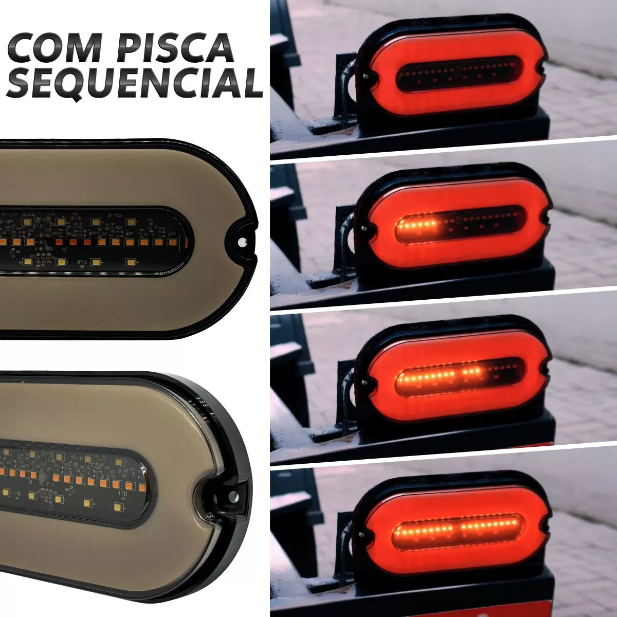 Par Lanterna Led Carretinha Pisca Sequencial Completa com todas as Funções: Ré, Pisca, Freio e Luz de Posição, a prova de Água