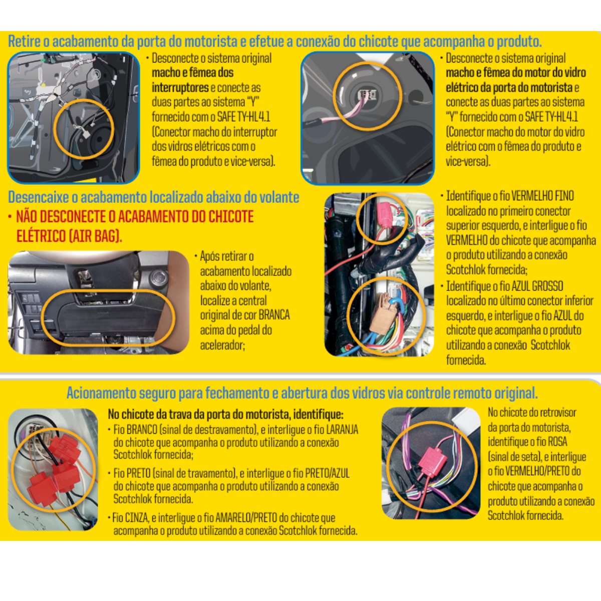 Instalação por profissional qualificado é recomendada para garantir o funcionamento correto de todas as funções (vidros + retrovisores + segurança).