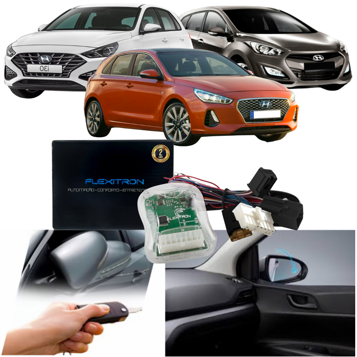 Veículos Hyundai i30 — anúncios apontam “Módulo Rebatimento Retrovisor Tilt Down i30 13 / 14 / 2015-2016” com módulo FTD HY-I3 2.0.