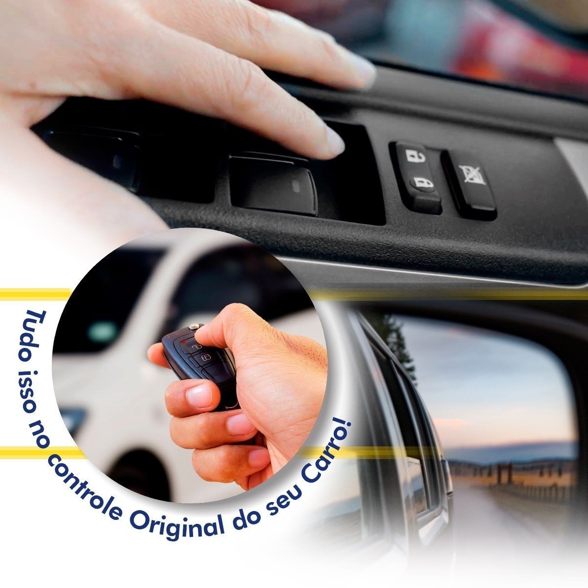 Fechamento via controle remoto / alarme: Sim — permite fechar os vidros com o travar das portas ou alarme.