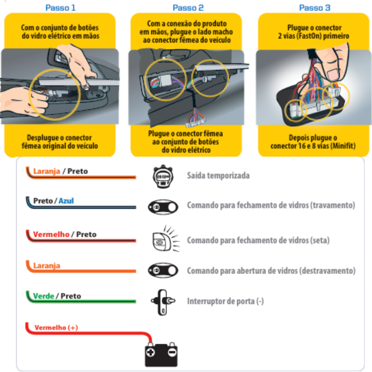Preservar funcionamento original dos botões dos vidros e evitar modificações invasivas no chicote.