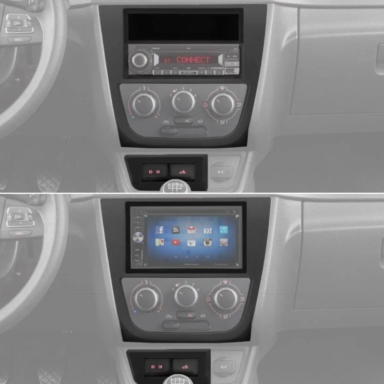 A Moldura de painel 2Din é produzida com materiais resistentes de alta qualidade e possui acabamento impecável. Compatíveis com centrais multimídias, DVD Player e qualquer outro que possui o padrão 2Din.