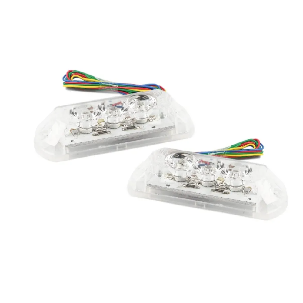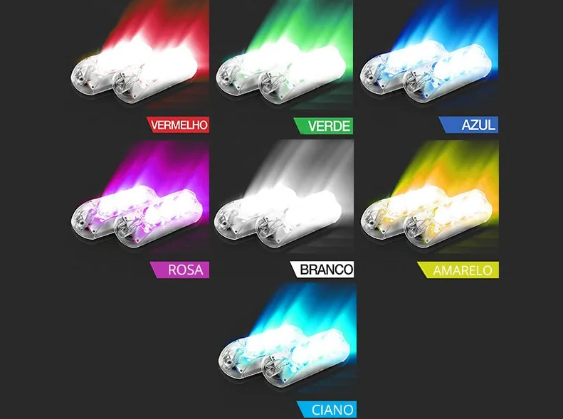 * Cada farol avulso RGB deste par possui 03 leds que entregam uma iluminação RGB e moderna para seu kit strobo. Cada led tem uma luz potente e possui longa vida útil. Devido ao seu modelo RGB este farol gera até 7 cores diferentes todas formadas a partir das cores: azul, vermelha e verde.