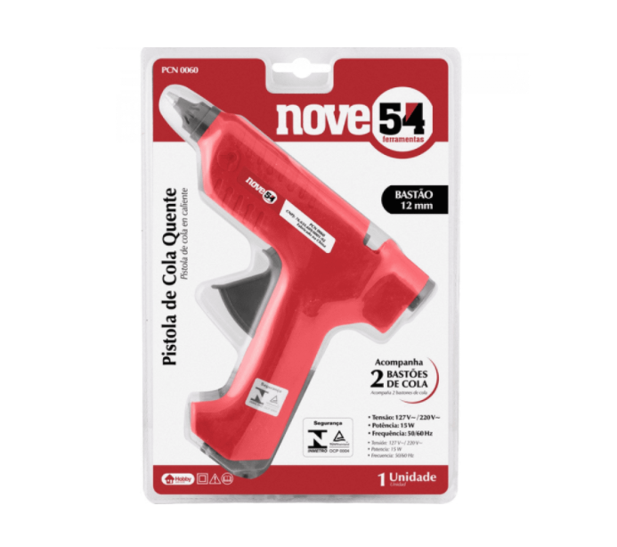 Pistola de Cola Quente Nove54 PCN 0060 para Bastão 12 mm Bivolt 15W INMETRO Vermelha
